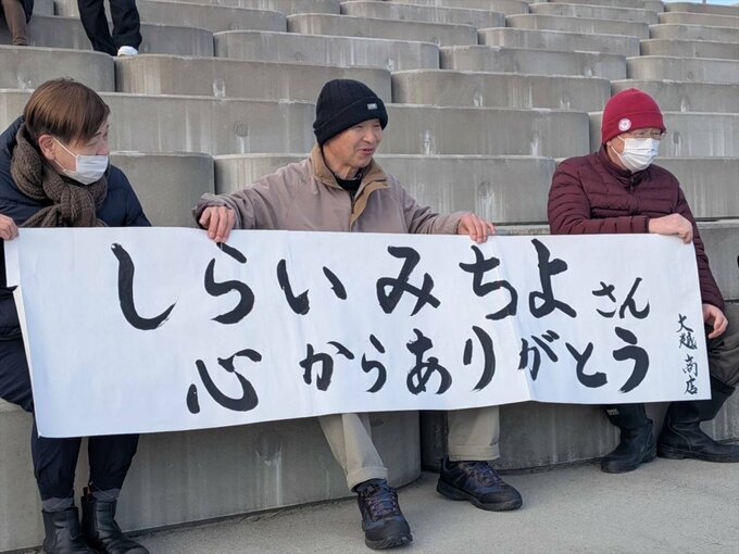 震災直後からボランティアとして気仙沼に通い続け、桜の植樹や花火の打ち上げで交流を重ねてきたしらいさん。節目の日の歌唱を終え、その表情には、約束を果たし続ける表現者としての決意が滲んでいました。