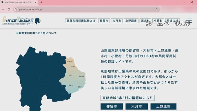 自治体職員の確保に向け山梨県の都留市や大月市など県東部地域の6つの市と村は、採用試験の1次試験を共同で実施することになり、申し込みを受け付けています。