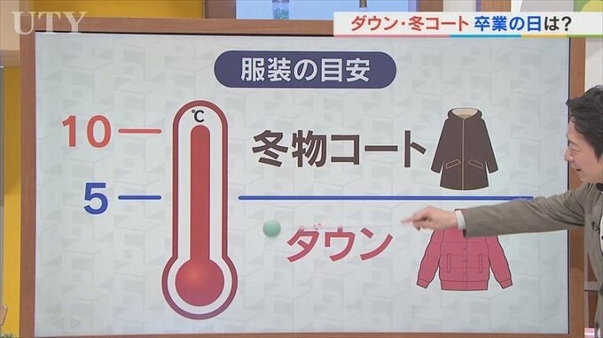 18日は午前中は各地で晴れ 夜は中・西部を中心に雨 ダウンや冬物コートのクリーニング時期も含め 米津龍一気象予報士が解説 山梨 2026年3月17日(火) 19:42 国内 天気 そろそろダウンやコートのクリーニングを出す頃になります。 まずこのダウンや冬物コートは基本的に何度で使うのかの目安はこちらです。 5℃を下回ったらダウン。5℃以上10℃未満だったら冬物コート。これが目安となっています。