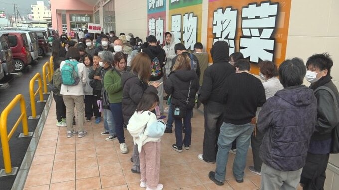 午前8時ごろ、ずらりと並ぶ人。その数100人以上。