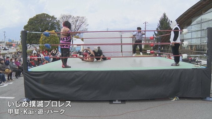 山梨県甲斐市でプロレスイベントが開かれ、大仁田厚さんも参戦し、何度でも立ち上がる姿でいじめの撲滅を訴えました。