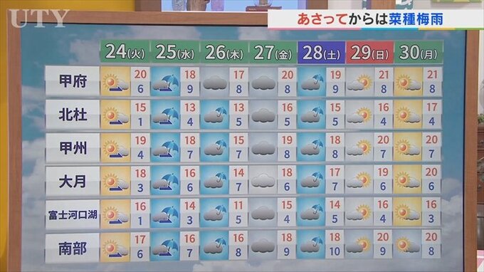 まず朝の最低気温は甲府はもう5度以下の日は無い見込みです。ですのでもう