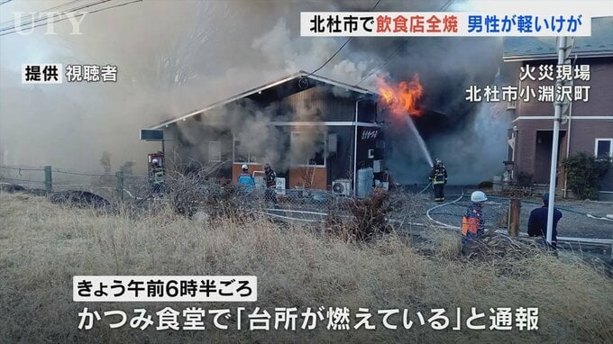 24日朝、山梨県北杜市で飲食店が全焼する火事があり、オーナーの男性が軽いけがをしました。