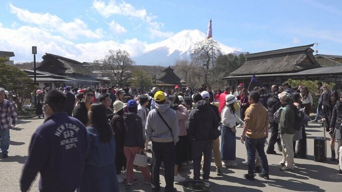 平日のきょう24日も大勢の観光客が詰めかけた世界文化遺産・富士山の構成資産の一つ忍野八海。