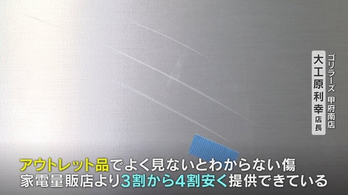 「アウトレット品というかたちでよくよく見ないとわからない傷、家電量販店より3割から4割安く提供できている」