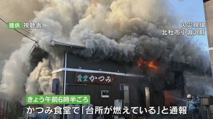 火事があったのは北杜市小淵沢町のかつみ食堂で、24日午前6時半ごろ「台所が燃えている」と通報がありました。