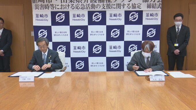 車いすなどに対応したタクシーを活用 介護が必要な人を円滑に福祉避難所へ運ぶ協定結ぶ 山梨・韮崎市 To view this video please enable JavaScript, and consider upgrading to a web browser that supports HTML5 video 2026年3月27日(金) 11:54 国内 暮らし・マネー 車いすに対応したタクシーを活用して、災害時に介護が必要な人を福祉避難所に送る協定を山梨県韮崎市と関係団体が結びました。 韮崎市が協定を結んだのは県介護・福祉タクシー協力会で26日は関係者が出席して協定書にサインしました。