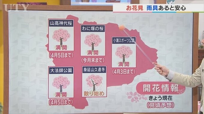 お花見日和ということで、県内の開花情報です。だいぶ進みました。