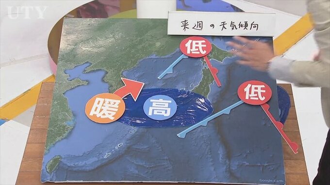 そうなると南に高気圧、北に低気圧という気圧配置になり暖かい空気がどんどん入り込みやすくなるので、これによって来週は気温が高いことになりそうです。