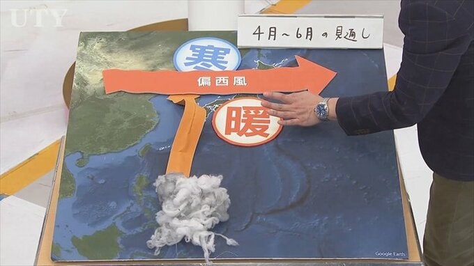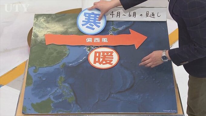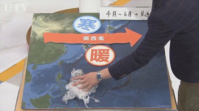 ということは山梨県内は偏西風の南に入りますので温かい方が優勢なんです。