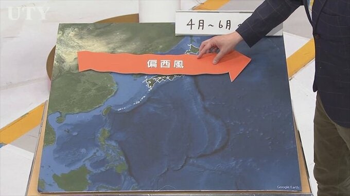 まず、日本の上空には西から東へ流れる偏西風があります。