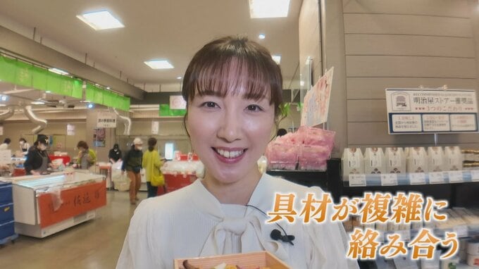 「すし飯と鯖のおぼろ、様々な具材が複雑に絡み合っておいしいです。奥深い味わいですね」