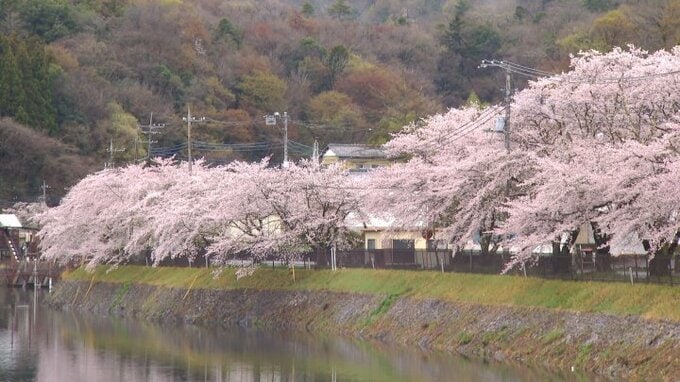 遊歩道沿いに植えられた千本の桜が見頃を迎え水辺に映える 山梨・大野貯水池