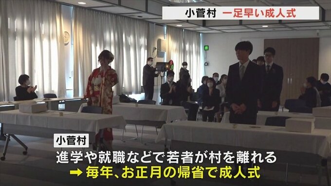 人口およそ650人の小菅村は進学や就職などで若者が村を離れるため、毎年お正月の帰省に合わせて成人式を行っています。