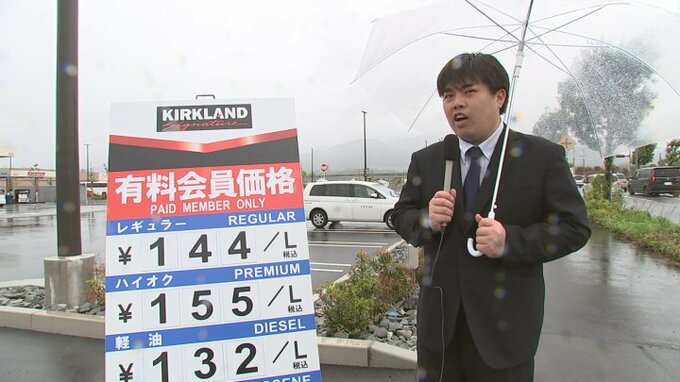 「コストコに併設されたガソリンスタンドですが、今日のレギュラー価格144円と書かれています」