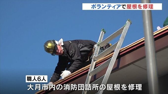 屋根の修理などを手掛ける山梨県大月市の会社が仕事始めに消防団の詰所の屋根をボランティアでふき替えました。