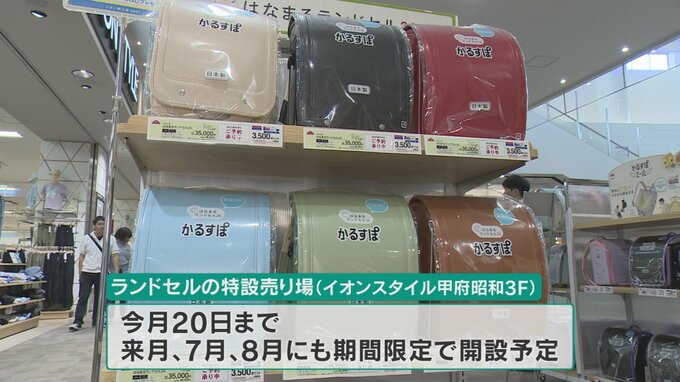 “高機能かつ低価格”がイチオシ 入学式を終えたばかりでも 早くも来年度のランドセル商戦はじまる 山梨 2026年4月14日(火) 21:45 国内 杉田さん: 「ゆっくり楽しく選んでほしい」 イオンスタイル甲府昭和のランドセル特設売り場は4月20日までですが、5月と7月、8月にも期間限定で開設を予定しています。