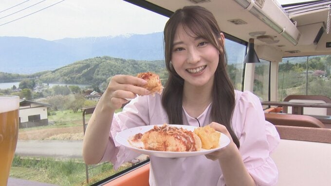 千代田湖と南アルプスが望めるバス停に停車して食べる絶品のランチです。