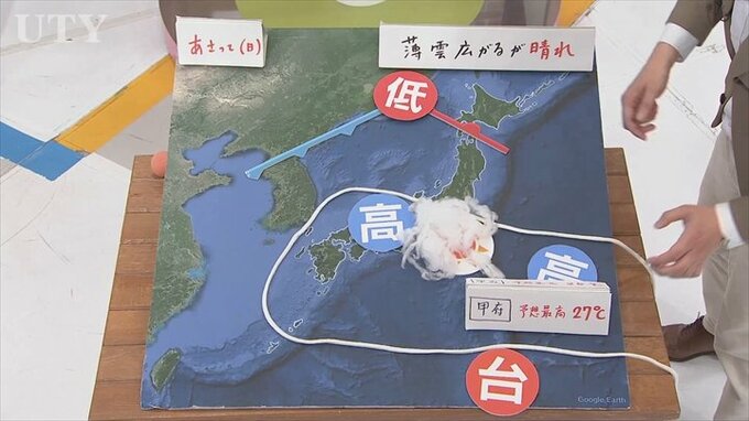 これによって、あさっても同じように晴れて薄雲が広がることになりそうです。
