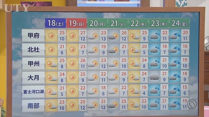 週間天気を見ていきますと、あさってまではこの25℃以上の夏日で汗ばむ陽気が続きます。朝と昼の気温差も大きくなりそうです。