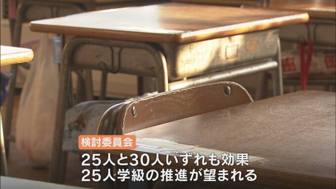 すでに1、2年生には25人学級が導入されていて検討委員会は小学3年生以降の少人数教育について、25人と30人のいずれも効果があるものの、25人学級の推進が望まれるという方向性を報告していました。