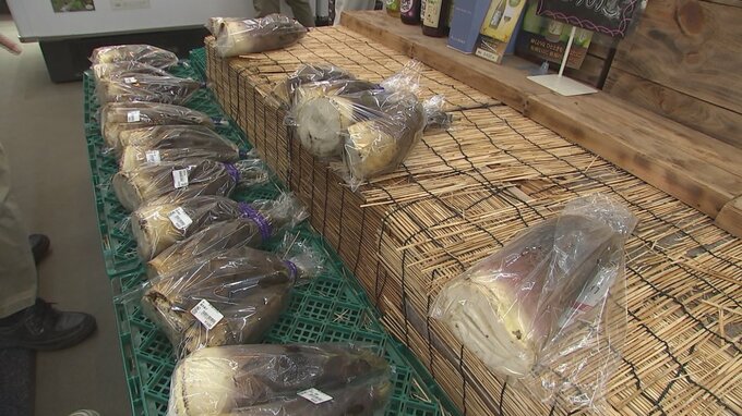 豊作の今年はシーズンの後半となる今月下旬になってもタケノコが店頭に並ぶため、農家が価格を下げる傾向にあり、きょうは1キロ1000円以下のものが並んでいました。