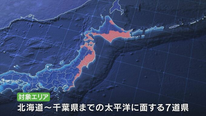 対象エリアは北海道から千葉県までの太平洋に面している7つの道県です。