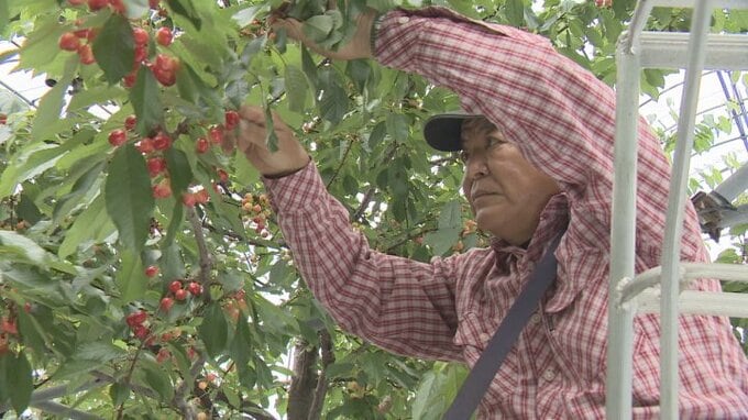 食彩・アグリ山梨 「初夏を感じる甘酸っぱさ」 ハウスのサクランボ『高砂』初収穫 天候に恵まれ糖度や色づき良好 山梨・南アルプス市 2026年4月23日(木) 11:49 国内 話題・グルメ 山梨県南アルプス市でハウス栽培のサクランボが今シーズンの初収穫を迎えました。 きょうは県内最大の産地、南アルプス市にある秋山仙一さんの農業用ハウスで甘みと酸味のバランスの取れた早生品種「高砂」が収穫されました。
