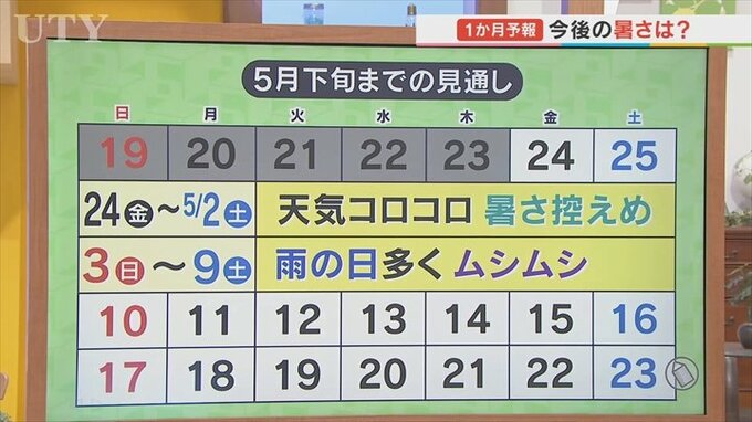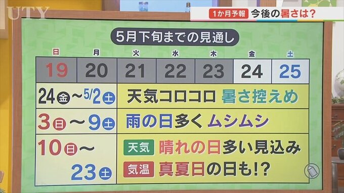 そして5月10日から23日にかけては晴れの日が多い見込みとなっていまして、気温が平年よりも高いのでもしかすると30℃以上の真夏日の日もありそうです。
