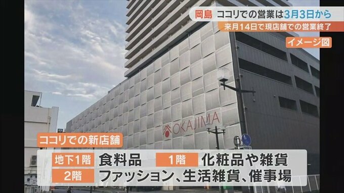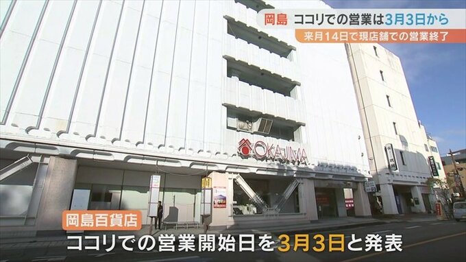 甲府市の商業施設ココリに移転する岡島百貨店。その新しい店舗の営業開始日が3月3日と発表されました。