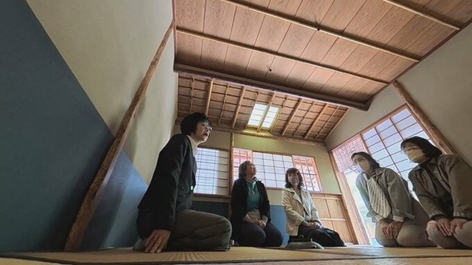 今回初めて特別公開され、訪れた人は学芸員の解説を聞きながら趣のある茶室に見とれていました。