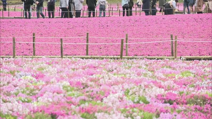 富士山と一面に広がるピンクのじゅうたん 50万株の芝桜が満開 富士芝桜まつり 山梨 2026年4月24日(金) 20:11 国内 富士河口湖町の富士本栖湖リゾートで開催されている「富士芝桜まつり」。 およそ50万株の芝桜が満開です。
