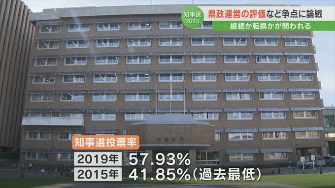 知事選の投票率は4年前の前回が57.93%で、8年前は過去最低の41.85%でした。