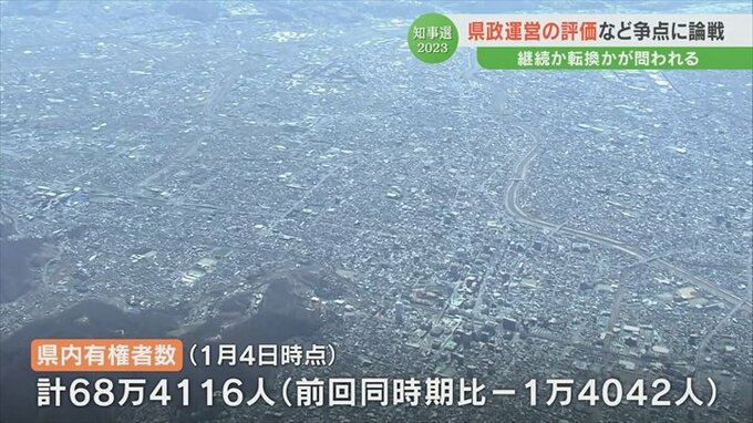 県の選挙管理委員会によりますと1月4日時点の県内の有権者の数は68万4116人で4年前の前回と比べ1万4000人余り減少しています。