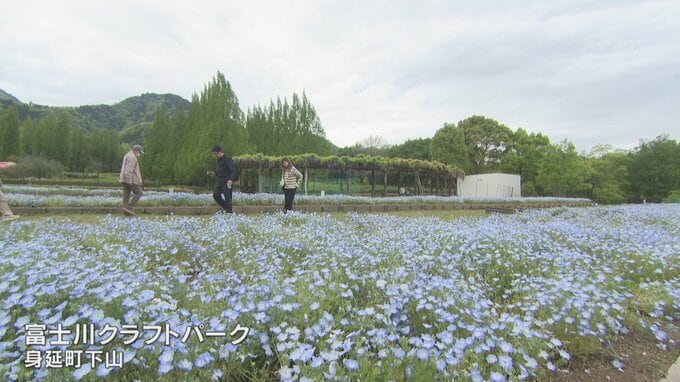 ネモフィラが見頃 3000平方メートルの花壇が淡い青に染まる 山梨・富士川クラフトパーク 2026年4月27日(月) 20:18 国内 暮らし・マネー 山梨県身延町の公園で1万8000株のネモフィラが見頃を迎えています。 身延町の富士川クラフトパークです。 こちらには1万8000株のネモフィラが咲いていて、いま見頃を迎えています。