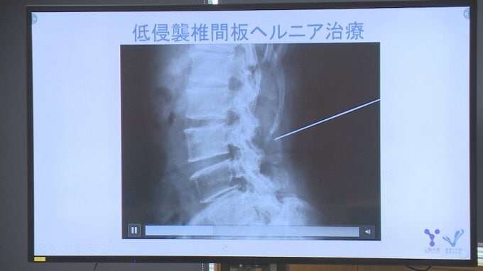 「患者は早く改善して楽になる」 腰椎椎間板ヘルニアの治療薬の開発へ 性質が変化した椎間板を分解 山梨大学発のベンチャー企業と製薬会社がライセンス契約 2026年4月27日(月) 18:59 国内 この新薬候補はヒト由来の酵素を患部に注射して性質が変化した椎間板を分解し、ヘルニアの早期回復を促します。 医師による治験ではほとんどの患者で早ければ注射した翌日に痛みの軽減や足の可動域の増加といった効果がみられたということです。