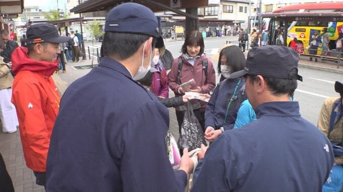 ゴールデンウィーク前に山岳遭難へ注意呼びかけ 去年の発生件数は過去最多 適切な装備や安全な登山計画を 山梨 2026年4月28日(火) 12:00 国内 暮らし・マネー あすから最大で12連休となるゴールデンウィークを前に、山岳遭難に注意を呼びかける街頭活動が大勢の観光客が利用する山梨県の河口湖駅前で行われました。 街頭活動には富士吉田警察署の警察官や県警本部の山岳救助隊員などおよそ10人が参加しました。