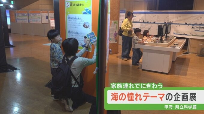 甲府市の山梨県立科学館では海へのあこがれをテーマにしたゴールデンウィークの企画展が開かれ、大勢の家族連れでにぎわいました。