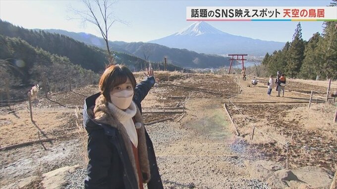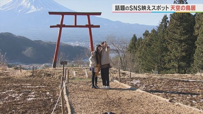 こちらの“天空の鳥居”は、今SNSで話題の映えスポットになっています。SNSで話題になったので、海外からのお客さんも多く見られます。