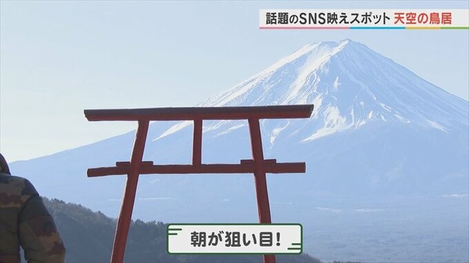 雄大な富士山を鳥居の先に拝むことのできる“天空の鳥居”