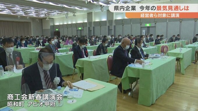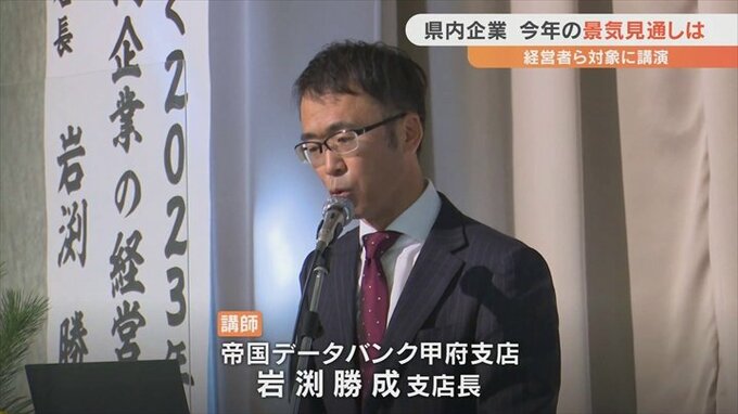講演会は県商工会連合会などが開いたもので、帝国データバンク甲府支店の岩渕勝成支店長が講師を務めました。