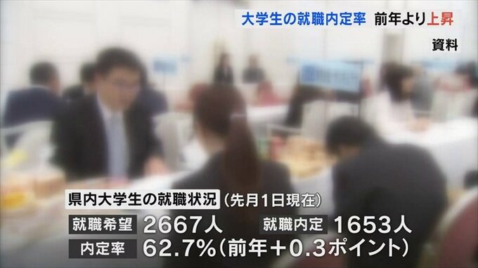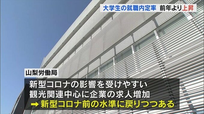 2023年3月に山梨県内の大学を卒業する予定の学生の就職内定率は62.7%で前の年より上昇しました。