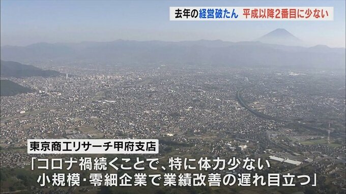 2022年1年間に経営が破たんした山梨県内の企業の数は24件で、平成に入って以降2番目に少なくなりました。