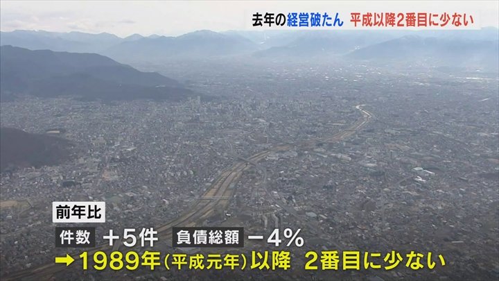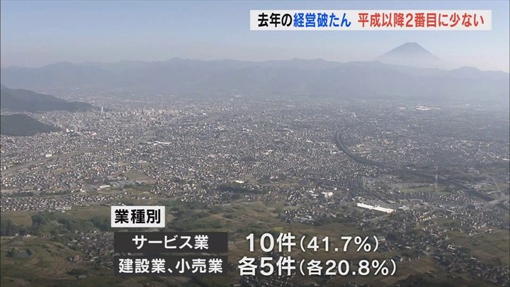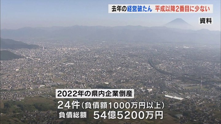 2022年1年間に経営が破たんした山梨県内の企業の数は24件で、平成に入って以降2番目に少なくなりました。