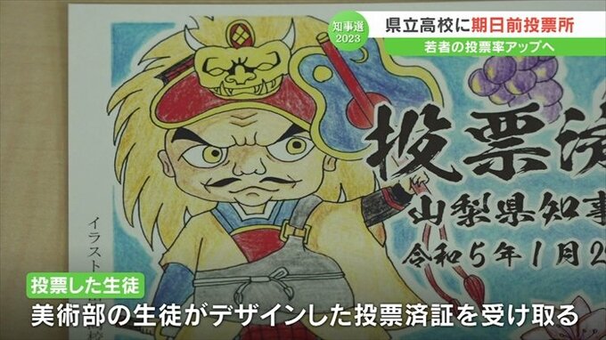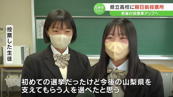 高校への期日前投票所の設置は若い世代の投票率を上げようと企画され、このうち県立笛吹高校では笛吹市内に住む3年生約60人が投票しました。