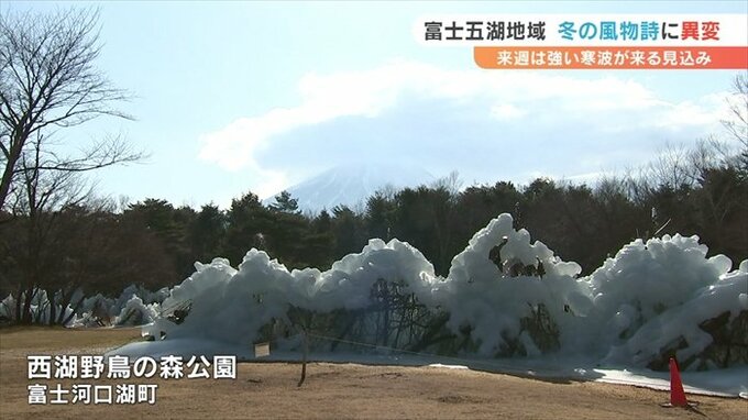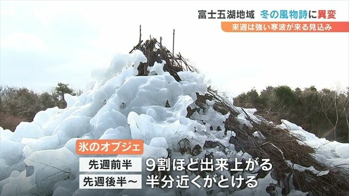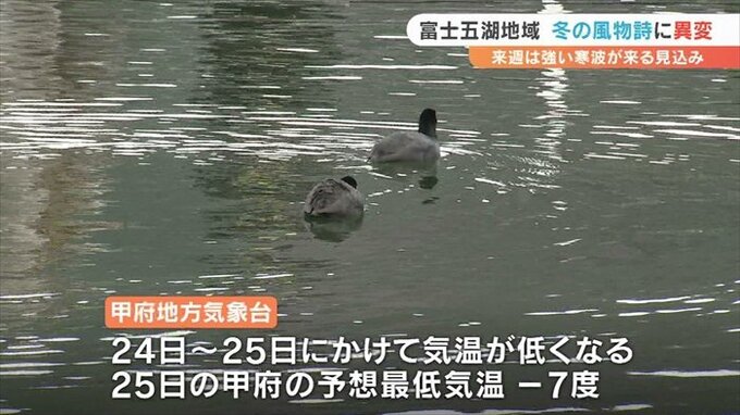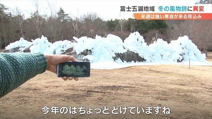 1月13日頃を中心に比較的暖かい日が続いたことから富士五湖の冬の風物詩にある異変が起きています。