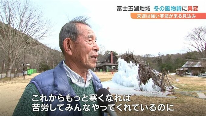 10日後の1月28日に始まる冬の風物詩西湖樹氷まつりに向け、氷のオブジェの制作が進んでいますが、ある異変が・・・