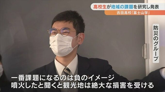 このうち、防災のグループは観光客に着目。富士山噴火は局地的な被害のため危機感が低く、周知の必要があるとした一方で負のイメージをもたれる恐れもあると発表しました。