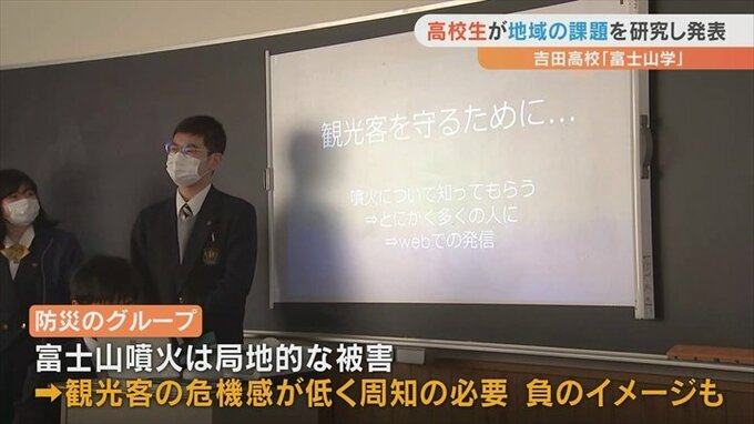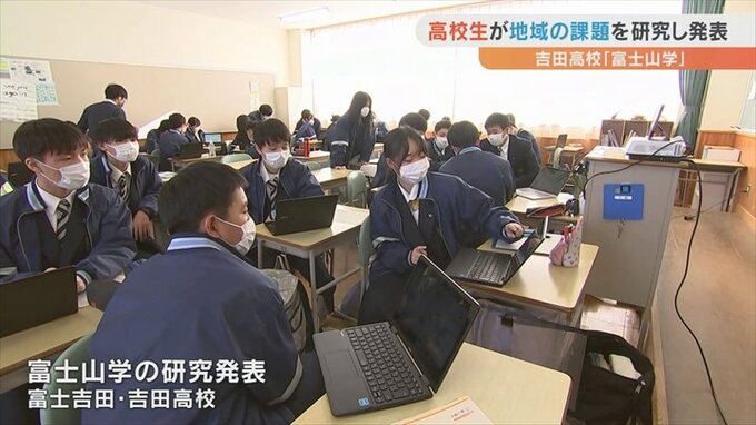 山梨県富士吉田市の吉田高校では地域の課題解決について考える「富士山学」を取り入れていて1月18日は1、2年生が研究成果を発表しました。