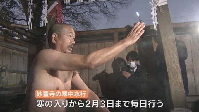 山梨県甲府市の寺では経文を唱えながら水を浴びる寒中水行が行われました。